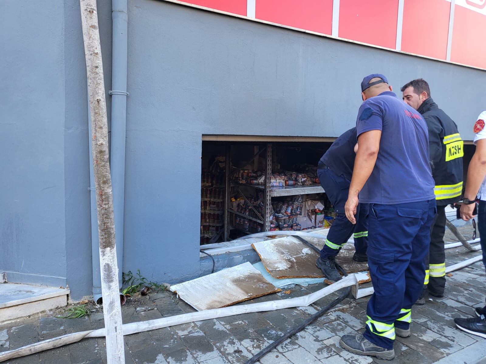 Një supermarket është përfshirë nga flakët mesditën e kësaj të Hëne në Shijak.