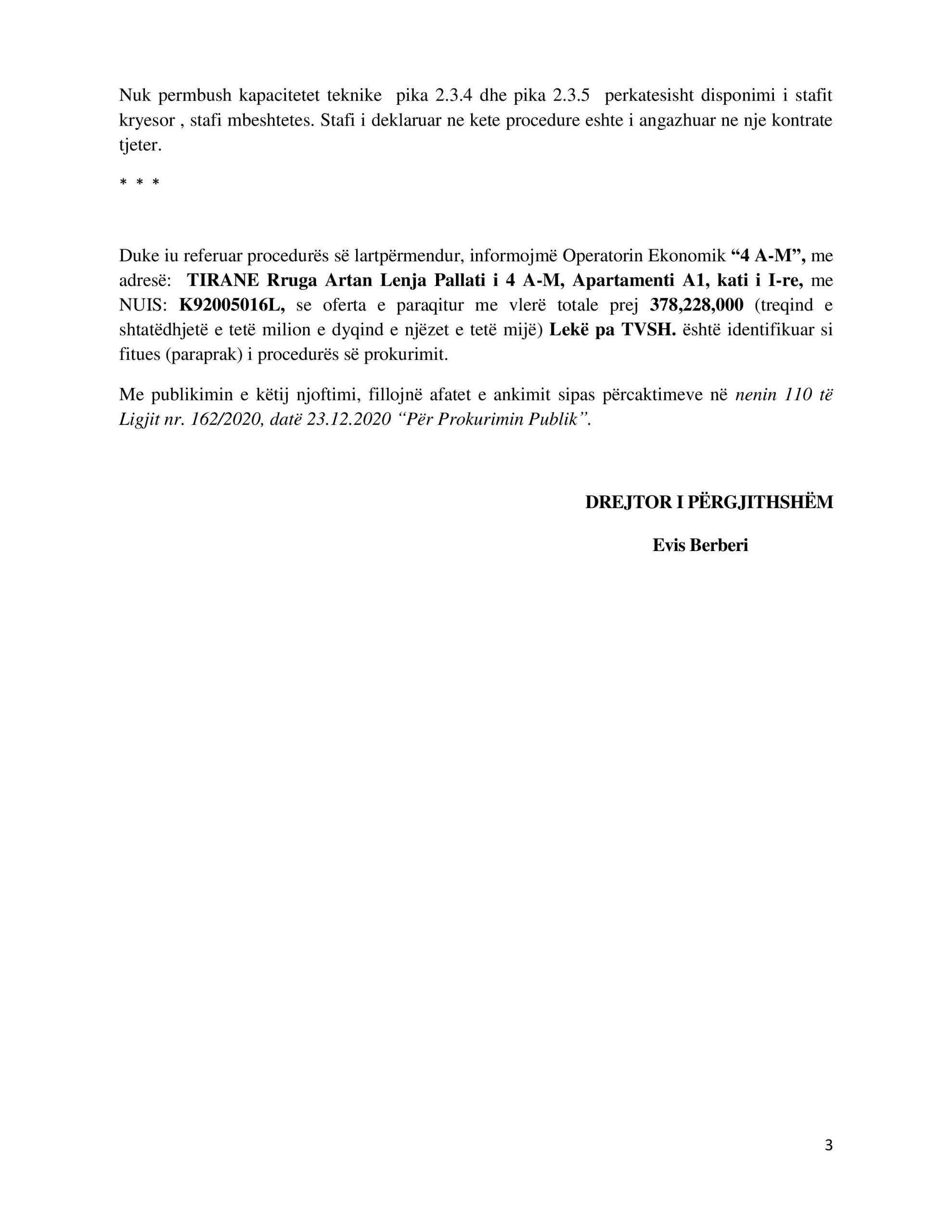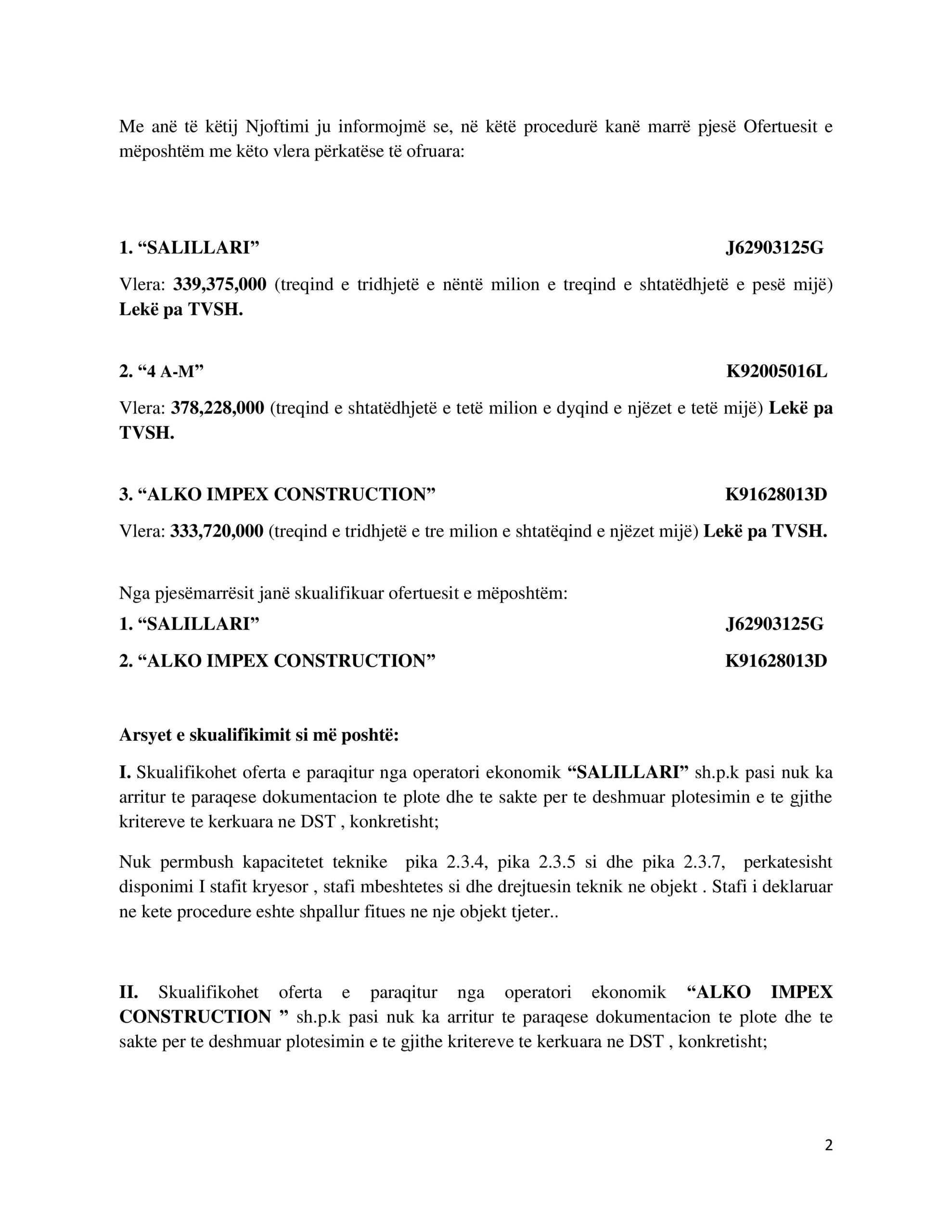 Por, të dy “peshkaqenët” Salillari dhe Abazi u s’kualifikuan. “SALILLARI pasi nuk përmbush disponimin e stafit kryesor, stafi mbështetës si dhe drejtuesin teknik në objekt. Stafi i deklaruar në këtë procedurë është shpallur fitues në një objekt tjetër” thuhet në këtë dokument.