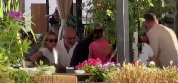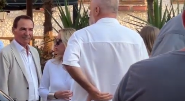 Ajo është ndalur në një kafene, në shoqërinë e kryeministrit Edi Rama, bashkëshortit Andrea Giambruno, vajzës Ginevra, motrës së saj Arianna e bashkëshortit Francesco Lollobrigida (ministri italian i Bujqësisë), por edhe ambasadorit italian Fabrizio Bucci.