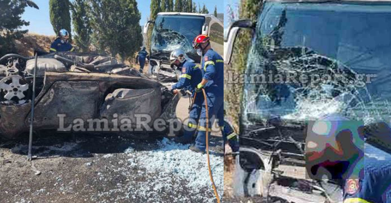 Një aksident i tmerrshëm rrugor ka ndodhur mesditën e së dielës në autostradën Livadhia-Amfisa, pas një përplasje kokë më kokë mes një autobusi dhe një makine.