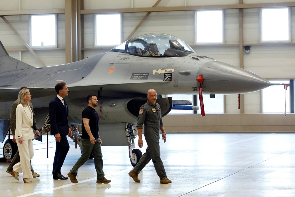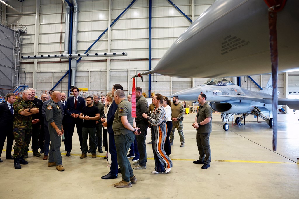 Gjatë vizitës së tij, lideri ukarinas u ndal në një hangar të ushtrisë holandeze në qytetin jugor të Eindhoven, ku inspektoi së bashku me Rutte-n dy F-16 të parkuar.