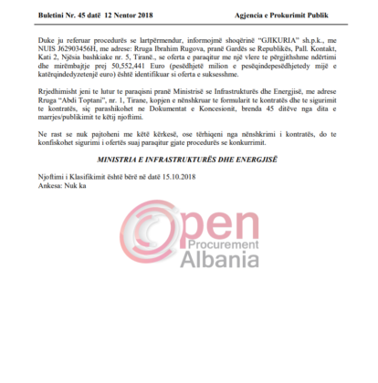 Ky segment iu dha me koncesion kompanisë “Gjikuria” me vlerën 50.5 milionë euro në nëntor të vitit 2018.