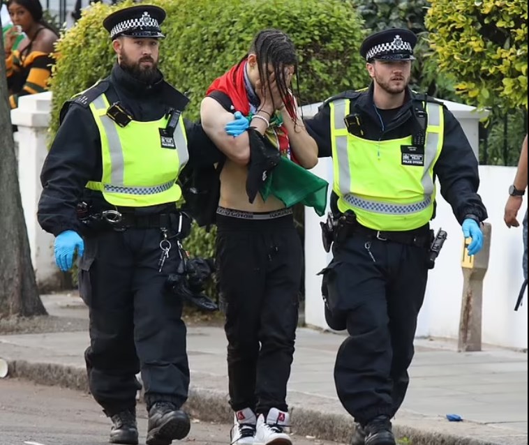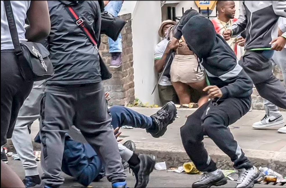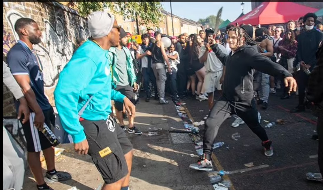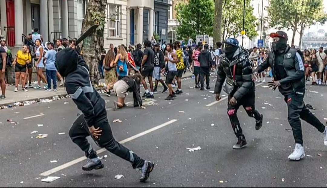 Imazhet tronditëse të publikuara nga tabloided britanike tregojnë disa prej të rinjve që morën pjesë në karnavale, të armatosur me hanxharë të mëdhenj teksa godasin të tjerë persona në mes të rrugës rrugë dhe në mes të ditës.
