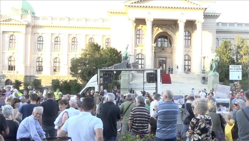 Duke brohoritur për largimin e Vuçiçit, protestuesit opozitarë u mblodhën para parlamentit dhe marshuan nëpër qytet.