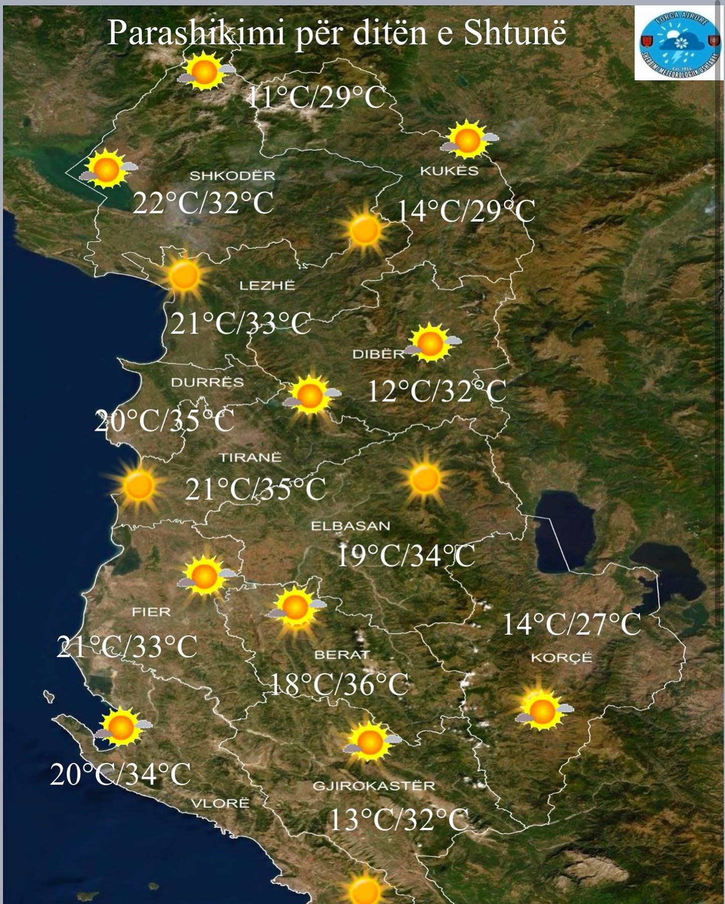 Në fushën termike për temperaturat pritet të pësojnë rritje kryesisht në vlerat e mesditës ku termomtri do të shënoj vlerën e 35-36 gradë.