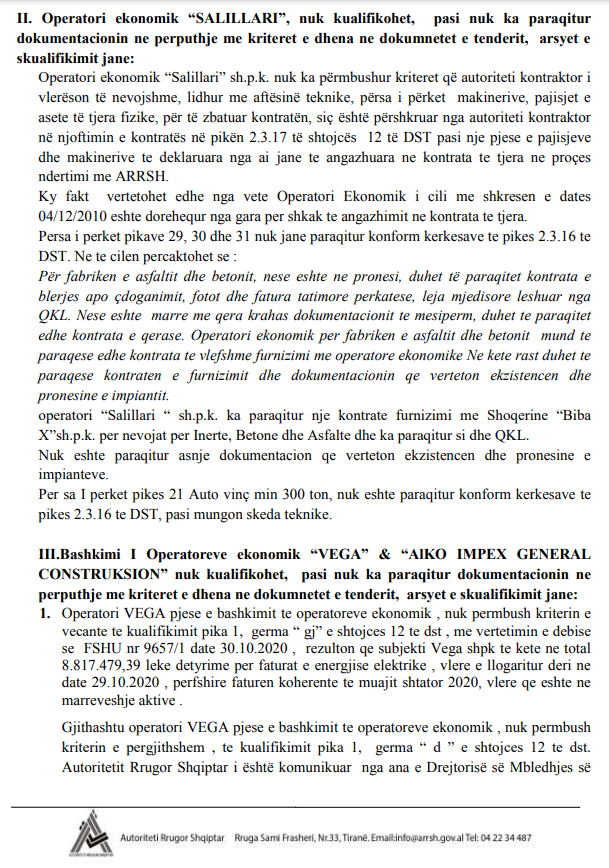 Tenderi i ndërtimit të rrugës Palasë-Dhërmi është finalizuar në vitin 2020. Në procedurat e ARRSH-së kishte hije të forta dyshimi se gjithçka ishte paracaktuar, pasi oferta e fituesit (Gjikurisë) me ofertën më të ulët të (Gener 2) kishte një vlerë prej 5 milionë eurosh.