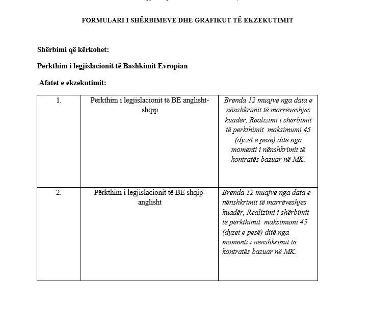 Tabelat e afateve dhe faqeve që kërkohen të përkthehen nga Ministria e Jashtme