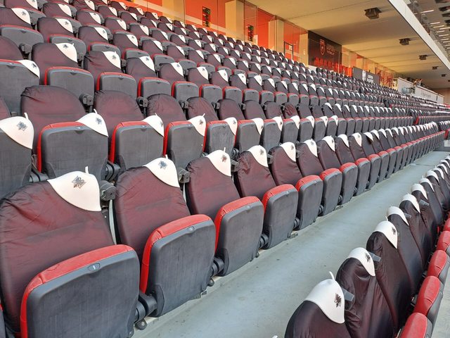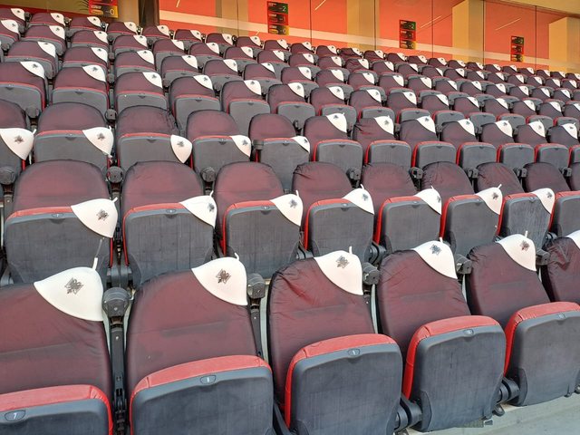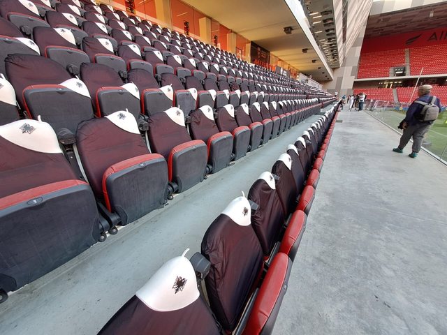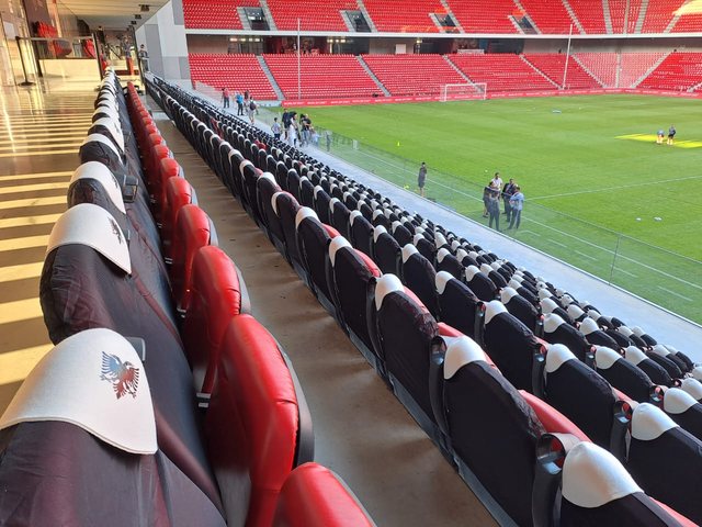 Siç shihet në fotot e mëposhtme , në çdo stol është vendosur një qeleshe, të cilën do të kenë mundësi ta përdorin tifozët e kombëtares shqiptare.