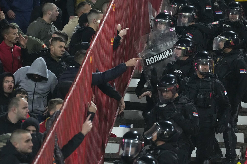 Tifozët e Malit të Zi u përplasën me policinë serbe në tribuna, pasi një stjuart serb vodhi një flamur malazezë në tribunën ku ishin të vendosur këta të fundit.