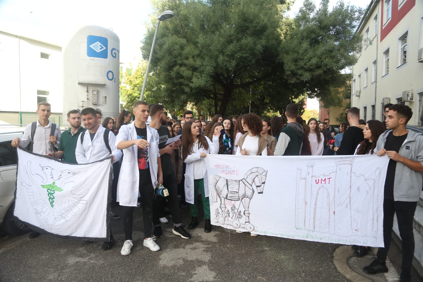 Studentët e mjekësisë vijojnë me bojkotin e mësimit dhe protestën kundër ligjit që ata e cilësojnë “i pengmarrjes së diplomës”, të iniciuar nga qeveria dhe miratuar në muajin Korrik në Kuvend, me votat e mazhorancës.