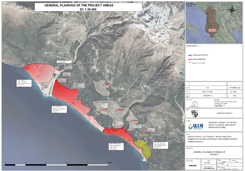 Dokumenti i mësipërm është publikuar nga Agjencia Kombëtare e Ujësjellësit, teksa vërehet se ujësjellësi do të shtrihet në të gjithë gjatësinë e Palasës, Dhërmiut. Gjurma kalon mbi Green Coast, vilat elitare që janë bërë edhe ato që pritet të bëhen në të ardhmen. Në dokumentet e AKUM-it shihet se projekti përfshin edhe vilat që s’janë bërë. Apo edhe hotelet që do të ndërtojnë strategjikët e Ramës në atë zonë. Por, projekti shtrihet edhe të investitorët e tjerë, që nga Gaçi apo edhe Papuli. Disa ditë më parë, Gaçit iu sekuestrua një pasuri e konsiderueshme nga SPAK-u pasi dyshohet se ishte marrë në mënyrë të paligjshme. Megjithatë, kjo s’e ka penguar Ballukun me vartësit e saj që t’i çojnë Ujësjellësin te projekti, i cili s’ka filluar ende të bëhet. Por, Balluku do të bëjë edhe një tjetër fazë ku do të përfshijë të gjithë.