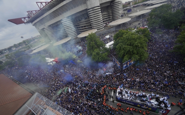 Kjo pasdite është festë për pjesën zikaltër të Milanos, teksa lojtarët po parakalojnë me një autobus të hapur në rrugët e qytetit para tifozëve.