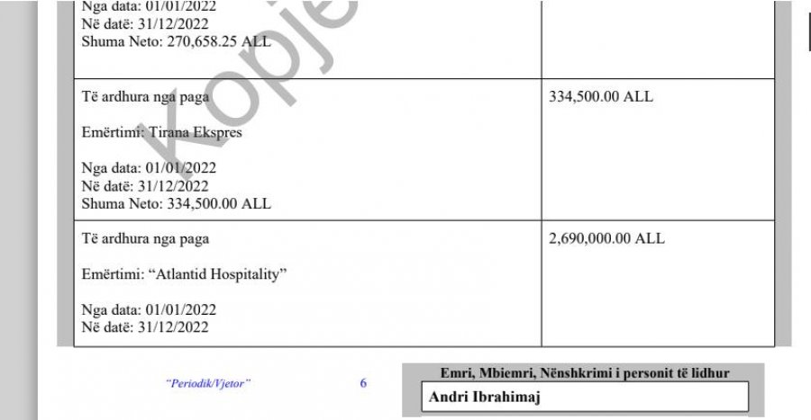 Referuar vetëdeklarimeve pranë ILDKPI, bashkëshorti i ministres Ibrahimaj, Andri Përparim Ibrahimaj rezulton: