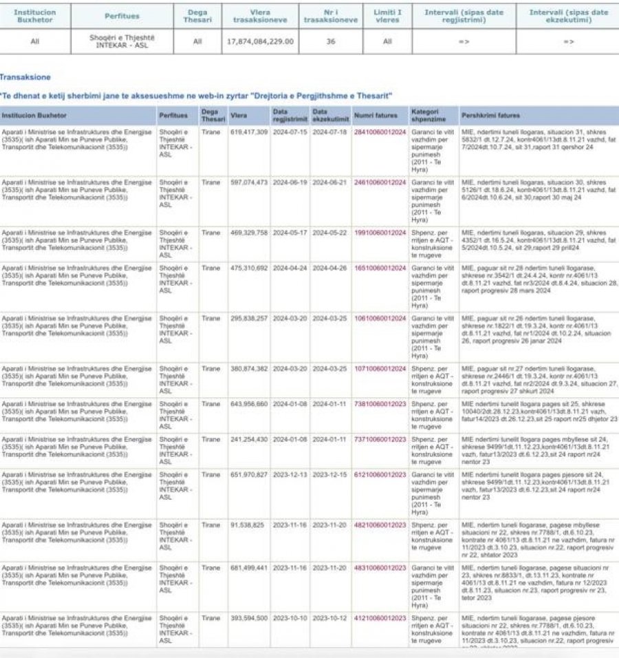 Sipas Spending Data, kompania turke “INTEKAR – ASL” me përfaqësues Abdulkadir Kart ish-deputetin dhe mikun e presidentit Erdogan, deri në 17 korrik 2024 është paguar 178 milion Euro nga Ministria e Infrastrukturës për punimet e tunelit të Llogarasë.