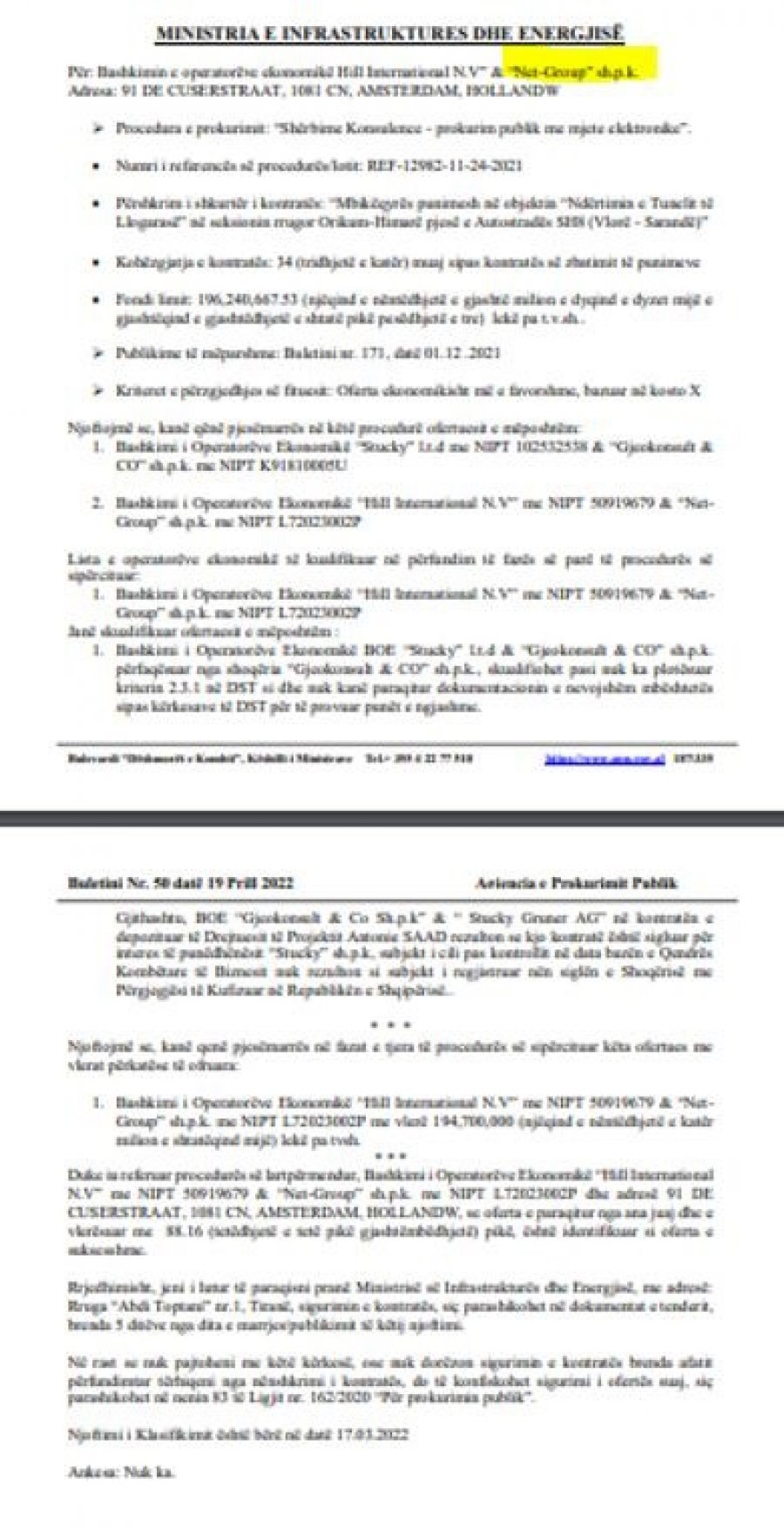 Ndërsa supervizimi u fitua nga bashkim operatorësh, pjesë e të cilit ishte kompania Net Group sh.p.k në hije e ish-drejtorit të ARRSH, Evis Berberit, i cili së bashku me pronarin në letra të kësaj shoqërie u arrestuan për korrupsion dhe pastrim parash. Kontrata e supervizimit kushtoi rreth 1.9 milionë euro.