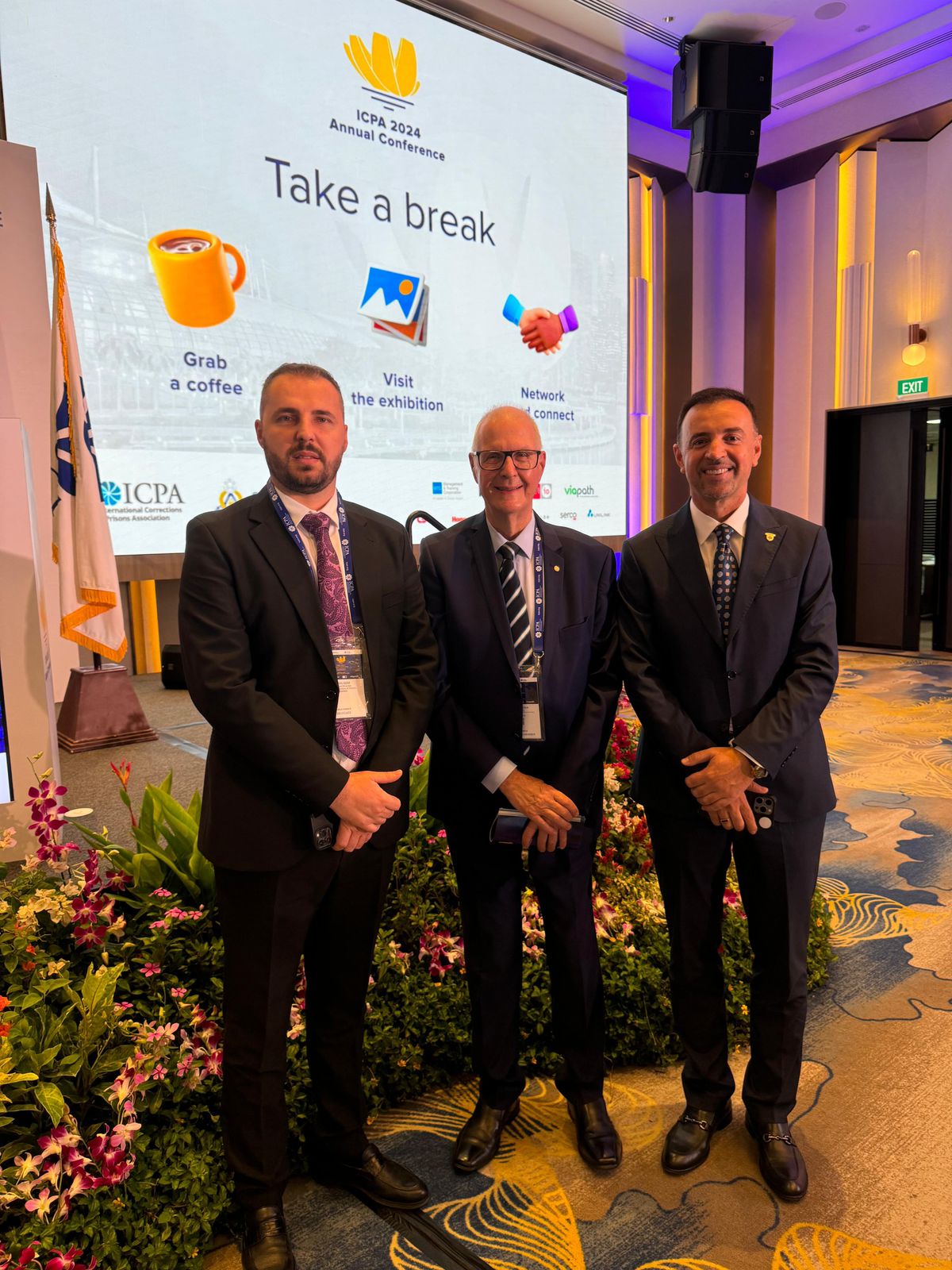 Drejtori i Përgjithshëm i Burgjeve, z. Klevis Qose, po merr pjesë në Konferencën Vjetore të ICPA 2024, e cila po zhvillohet në Singapor nga data 1 deri më 6 shtator 2024. Kjo konferencë ndërkombëtare, e organizuar nga Shërbimi i Burgjeve të Singaporit, mbledh drejtorë ekzekutivë, profesionistë dhe ekspertë nga e gjithë bota për të diskutuar mbi temën “Mundësimi i Qëndrimit: Përtej Recidivizmit.”