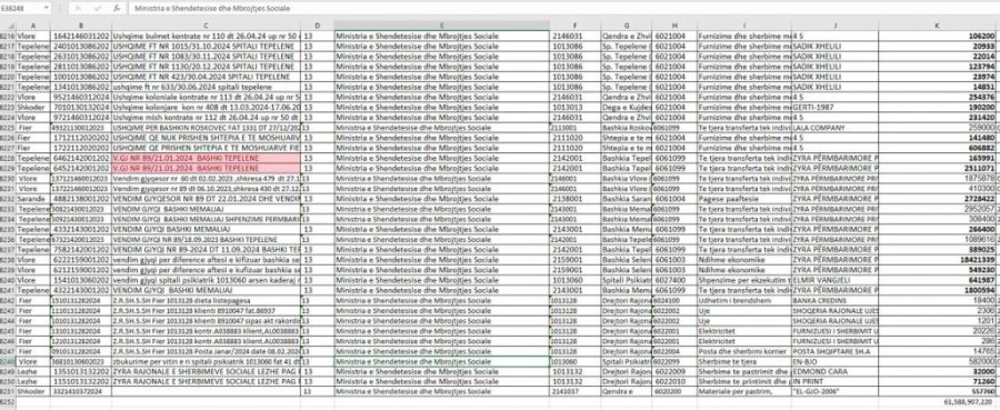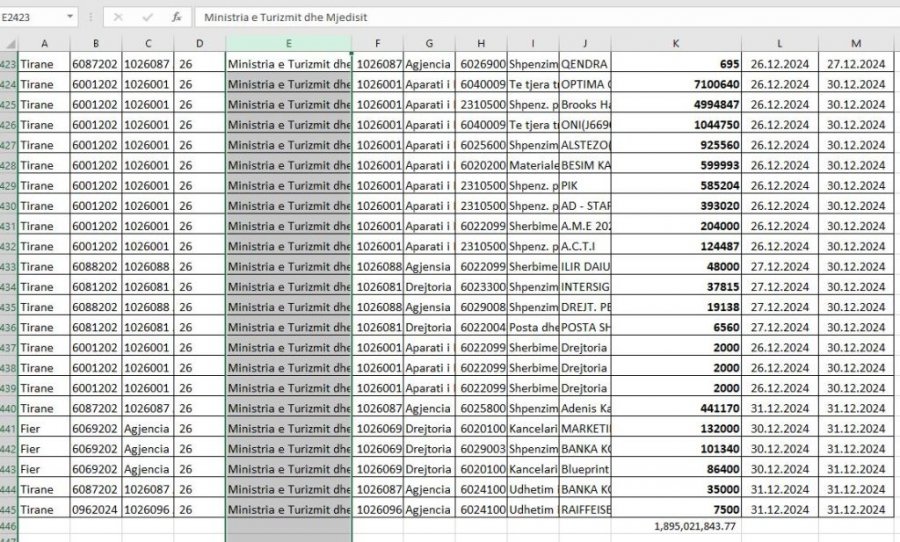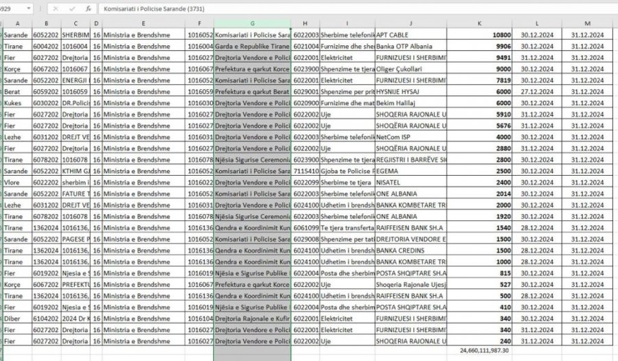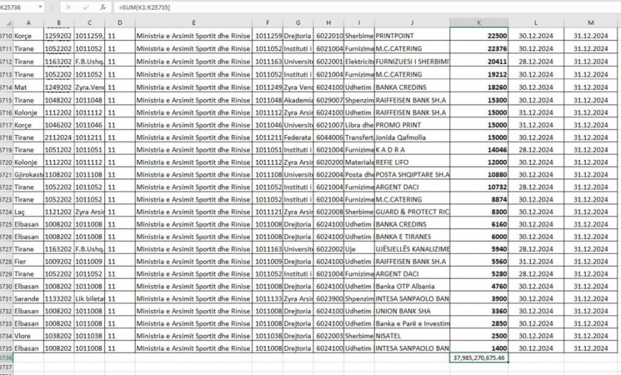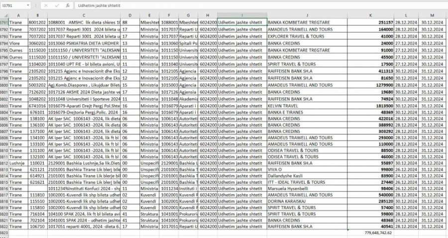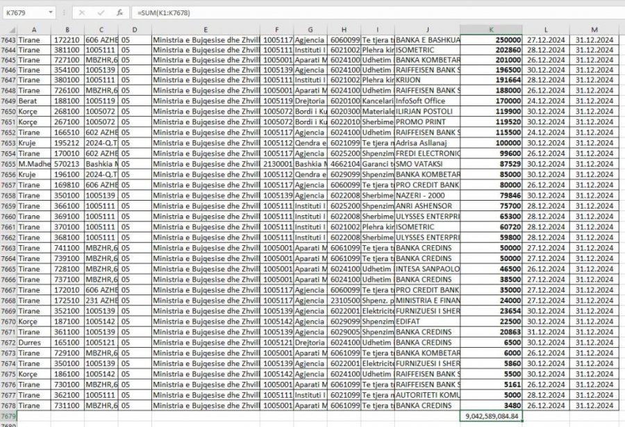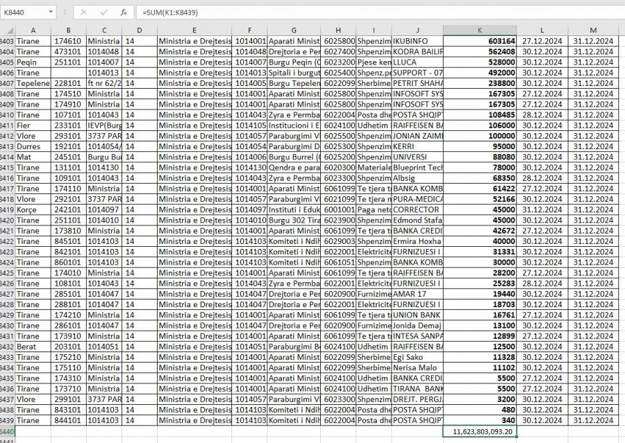 Të dhënat zyrtare të shpenzimeve regjistruar në thesarin e shtetit për vitin 2024 treguan këto shpenzimet ndarë sipas institucioneve: