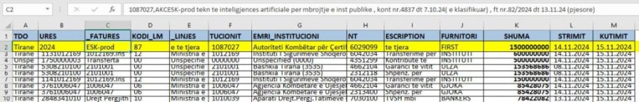 Në 2024 vijuan kontratat e klasifikuara ku përmendim atë me vlerën më të lartë lidhur nga Autoriteti Kombëtar për Certifikimin Elektronik dhe Sigurinë Kibernetike me (foto 20) ku vetëm vlera e një fature pjesore të saj ishte 15 mil euro, vlera totale e saj mbetet enigmë.