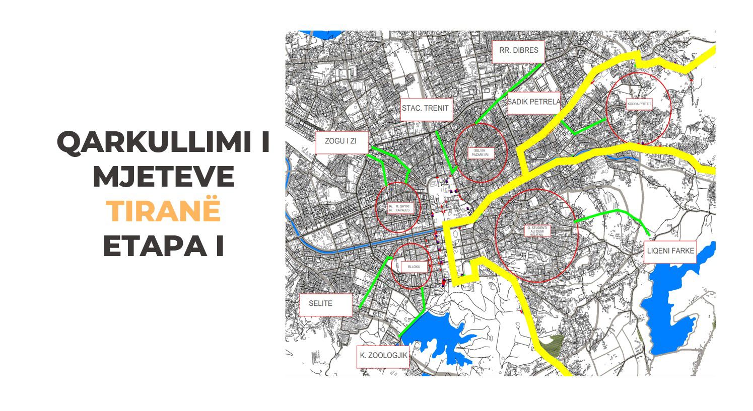 Zona e Tiranës së Re dhe e Bllokut ka dalje në rrugën “Kristo Luarasi”, diga e liqenit dhe dalje në Selitë.