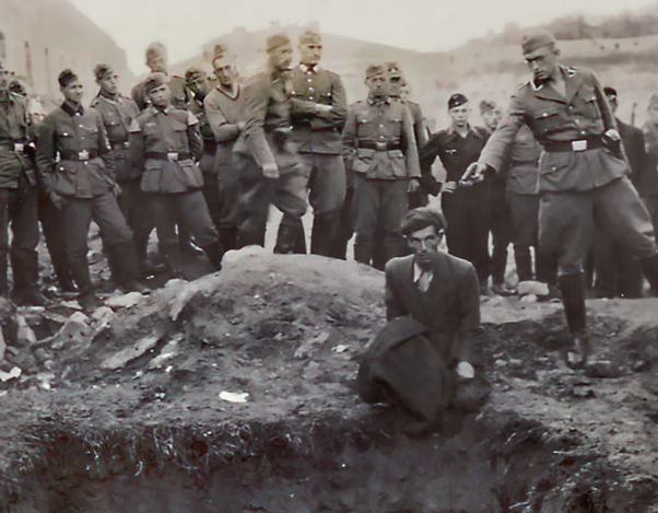 Një nga imazhet më të ftohta dhe tronditëse të Holokaustit, ku një ushtar nazist i veshur me uniformë dhe syze drejton armën drejt kokës së një burri hebre që gjunjëzohet para një grope të mbushur me trupa, ka marrë një dimension të ri pas gjetjeve më të fundit të një historiani gjerman, raporton The Guardian.