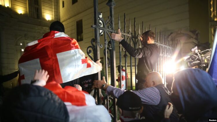 Policia e Gjeorgjisë ka përdorur të shtunën sprej piperi dhe topa uji kundër protestuesve që kanë tentuar të hyjnë në pallatin presidencial në Tbilisi.
