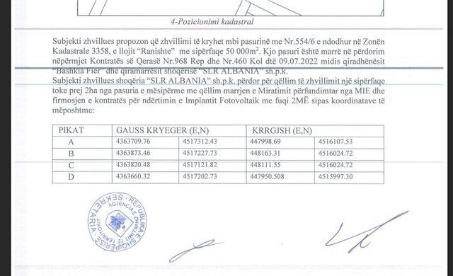 Faksimile: Sipërfaqja prej 50 mijë metra katrorë i është dhënë firmës SLR nga Bashkia e Fierit