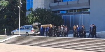 Kanë përfunduar sot në Pallatin e Kongreseve homazhet në nder të gjyqtarit Astrit Kalaja, i cili u vra dy ditë më parë në sallën e gjyqit gjatë ushtrimit të detyrës. Pas përfundimit të ceremonisë mortore, arkëmorti me trupin e tij të pajetë është nisur drejt Shkodrës, ku Kalaja do të prehet në banesën e fundit. … Continue reading Përfundojnë homazhet, përcillet për në Shkodër arkëmorti i gjyqtarit Astrit Kalaja