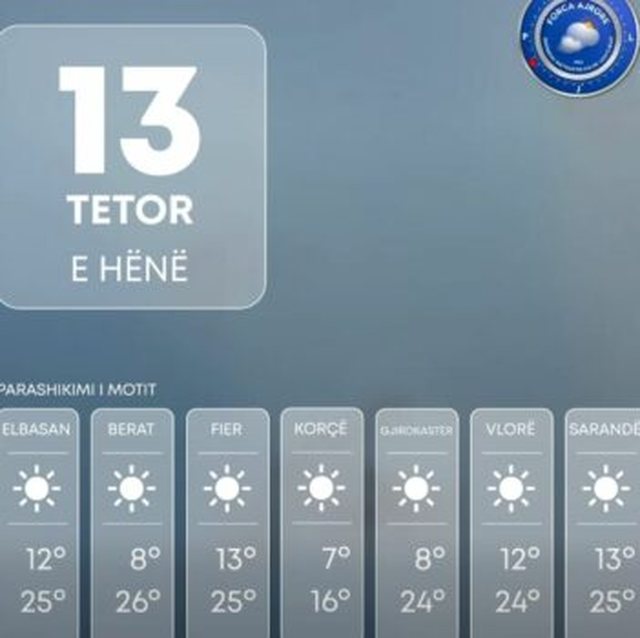Moti parashikohet i kthjellët në të gjithë territorin pa përjashtuar vranësira të pakta deri mesatare kalimtare.