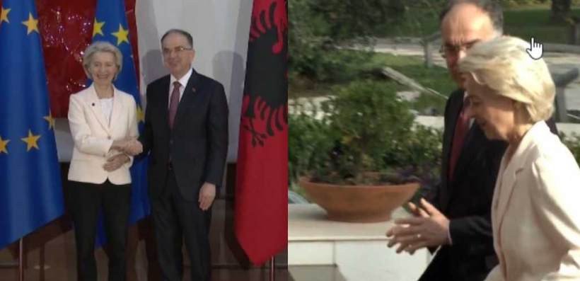 Presidentja e Komisionit Evropian, Ursula Von der Leyen ka mbërritur në Tiranë dhe pak çaste më parë u prit nga Presidenti Bajram Begaj në një takim në Presidencë.