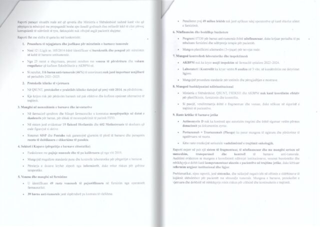 Raporti i KLSH-së evidenton dhe fakton shqetësimet e ngritura vazhdimisht në media dhe denoncimet e të sëmurëve me kancer për mungesën e barnave, përdorimin e barnave të skaduara, mungesën e kontrolleve laboratorike, si dhe ofrimin e shërbimit në kohë.