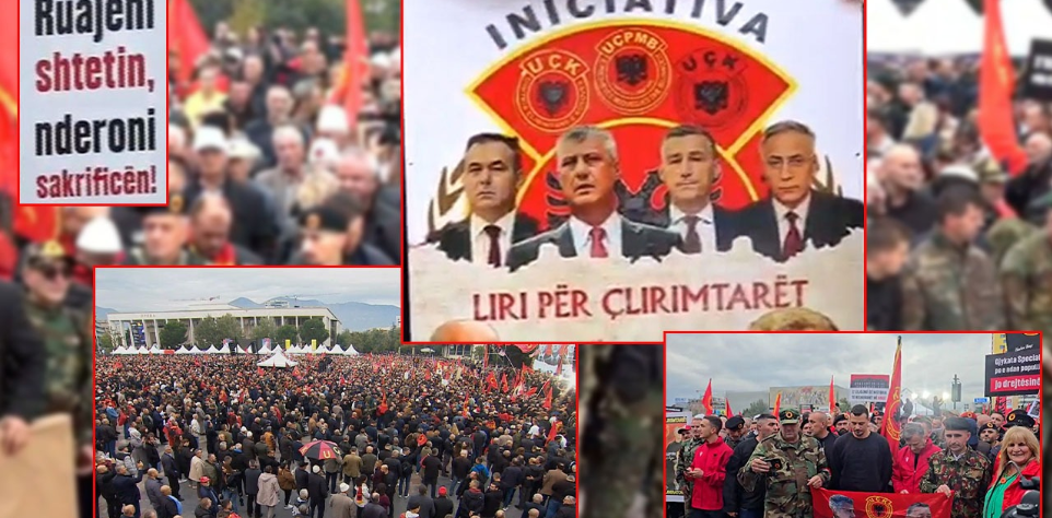 Qindra qytetarë u mblodhën sot në Sheshin “Skënderbej” në Tiranë për të protestuar në mbështetje të ish-krerëve të Ushtrisë Çlirimtare të Kosovës që ndodhen në Hagë.