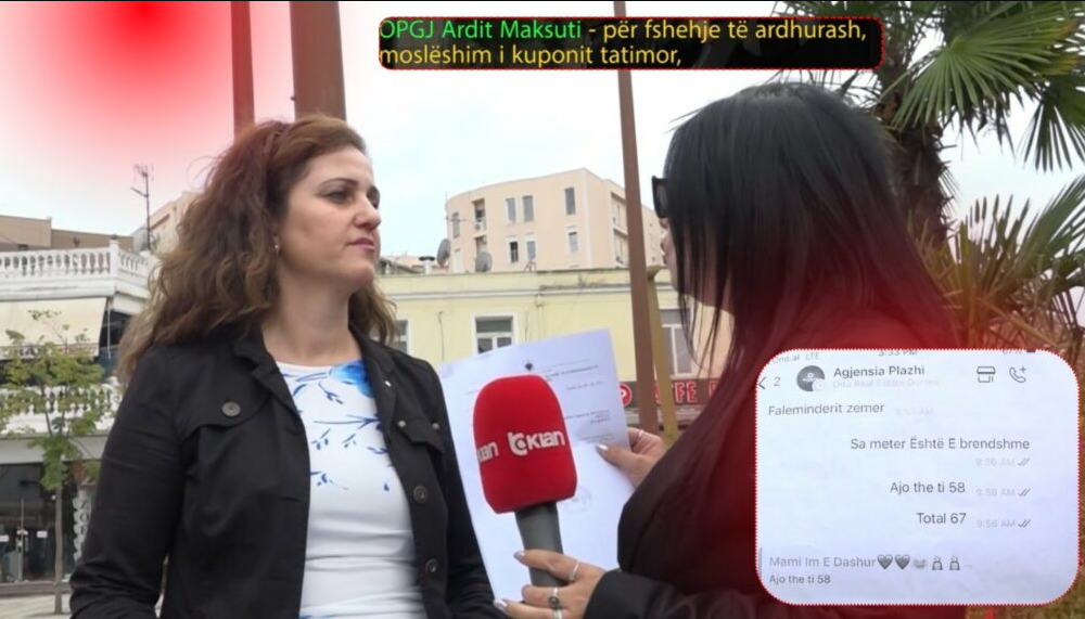Në Durrës, qytetarja Gjinovefa Menalla u përball me një mashtrim nga agjencia imobiliare “Dita Real Estate”. Ajo kishte rënë dakord të blinte një apartament në zonën e plazhit, me sipërfaqe 58 m² brenda dhe 67 m² me ambientet e përbashkëta, për çmimin 70 mijë euro.