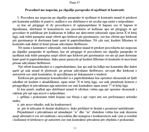 2.  Dyshime për abuzim me procedurat e prokurimit-përdorimi i procedurës me negocim pa shpallje paraprake nuk justifikohet ligjërisht.