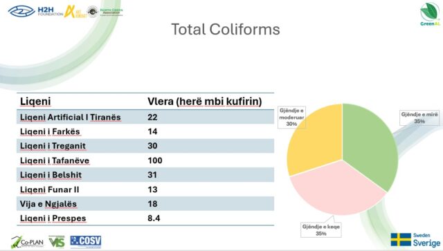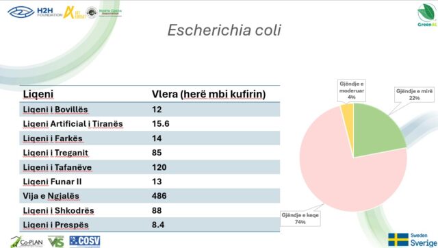 “Një nga gjetjet më alarmante ishte prania e lartë e Escherichia coli dhe koliformeve totale në shumicën e trupave ujorë, përfshirë liqenet me përdorim rekreativ si Farka, Artificiali i Tiranës, Belshi, Funari, Tregani dhe Tafanët. Këto vlera tejkalonin ndjeshëm kufijtë e lejuar sipas standardeve të BE-së dhe OBSH-së,” vijon aji.