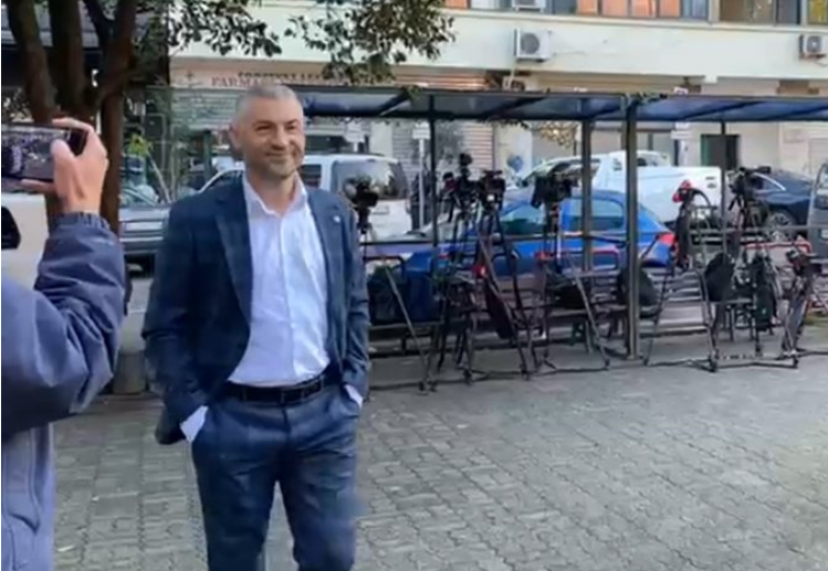 Deputeti demokrat ka përshëndetur gazetarët dhe operatorët ndërsa shfaqet i buzëqeshur.