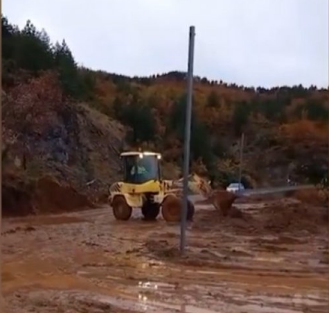 Si pasojë e rrëshqitjes së dheut dhe gurëve, segmenti rrugor është bllokuar plotësisht, duke penguar qarkullimin e automjeteve në të dyja drejtimet.
