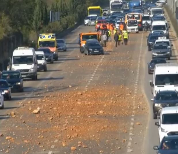 Policia ka proceduar penalisht dhe administrativisht drejtuesin e mjetit të tonazhit të rëndë, nga ku u derdhën inertet në autostradën Tiranë-Elbasan, duke shkaktuar trafik kilometrik.