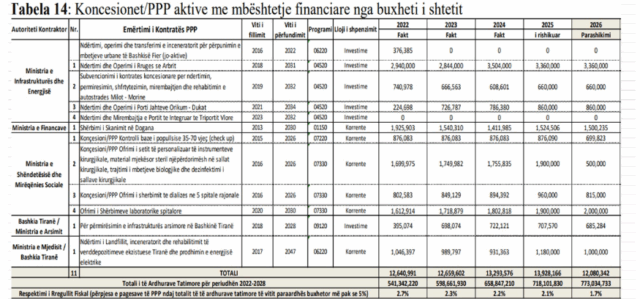 Në vitin 2026, financimet për kontratat koncesionare dhe projektet e partneritetit publik-privat (PPP) me mbështetje nga buxheti i shtetit parashikohen të pësojnë një rënie të ndjeshme krahasuar me vitin paraardhës.