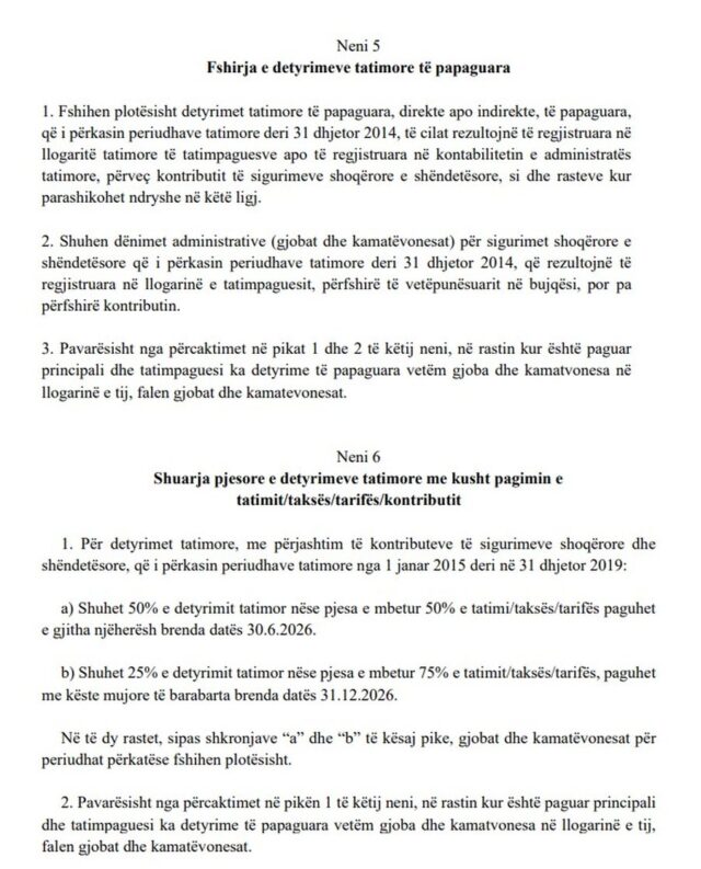 Në të dy rastet, sipas shkronjave “a” dhe “b” të kësaj pike, gjobat dhe kamatëvonesat për periudhat përkatëse fshihen plotësisht,” thuhet në projektligj.