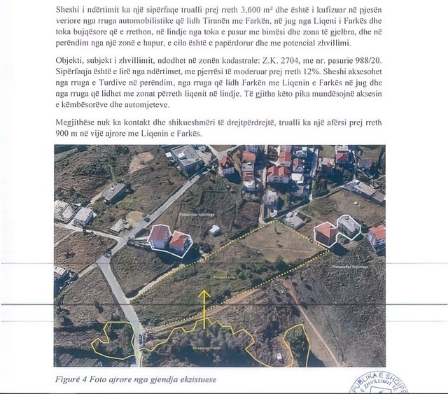 Dokumentet tregojnë se sheshi i ndërtimit kufizohet nga rrugët kryesore dhe toka bujqësore përreth, ndërsa baza e strukturës është drejtkëndore me vetrata të mëdha transparente dhe ballkone kalimi.