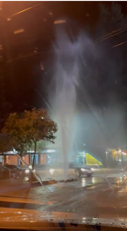 Pamjet nga vendngjarja tregojnë një sasi të madhe uji që del me presion të lartë, duke krijuar një pamje të ngjashme me shatërvan, ndërsa rruga është mbuluar nga ujërat që rrjedhin pa kontroll.