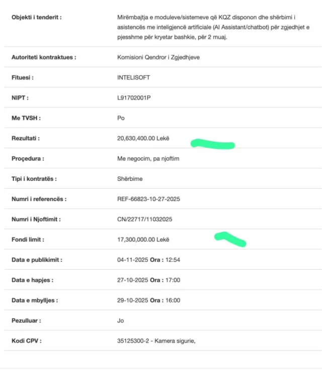 Por kësaj radhe, me bindjen se askush nuk i kontrollonte dhe nuk jepte llogari, nuk kishin plotësuar as shifrën e saktë. Kompania INTELISOFT kishte fituar tenderin mbi fondin limit.