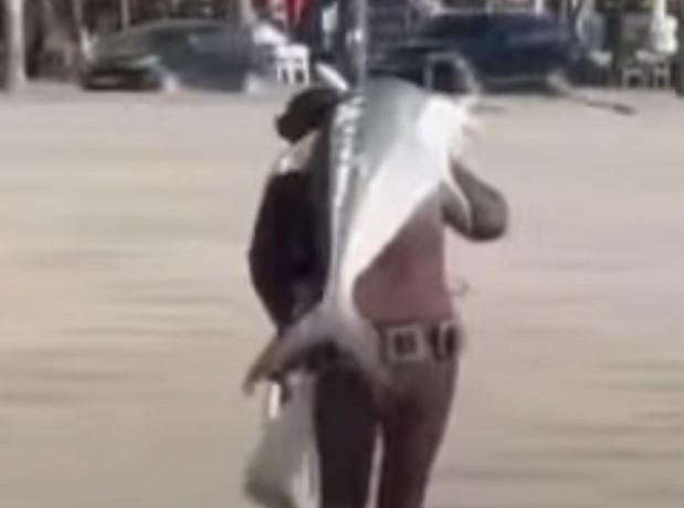 Ai është parë dhe filmuar nga kalimtarët teksa mbante peshkun mbi supe dhe kalonte përgjatë shëtitores së Vlorës, duke tërhequr vëmendjen e turistëve dhe banorëve.