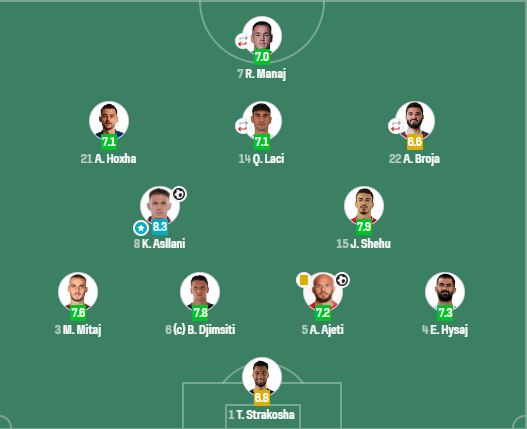 Ylli i mesfushës, u vlerësua me notën 8.3 nga faqja e specializuar e statistikave “Sofa Score”, ndërkohë që podiumin e plotësojnë Juljan Shehu me notën 7.9 dhe Berat Gjimshti me 7.8.