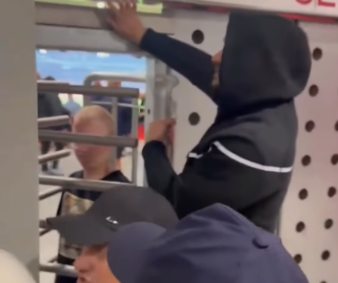 Pamjet e publikuara tregojnë momentin kur dera e sigurisë është mbyllur papritur gjatë kalimit, duke bërë që tifozi të mbetet i izoluar mes dy portave.