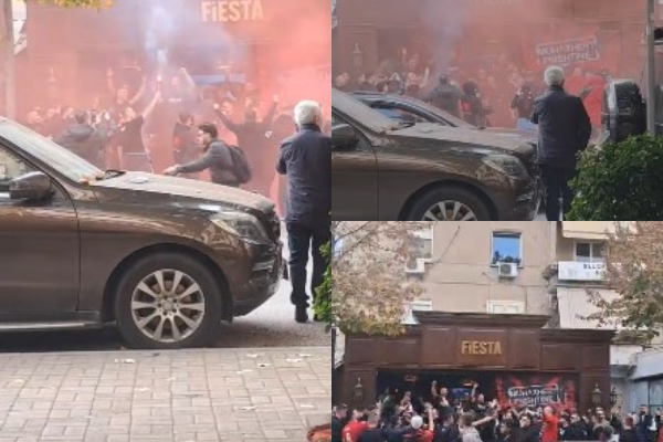 Sic mund të shihet dhe në videon e mëposhtme tifozët festojnë me këngë patriotike, ndërsa nuk kanë munguar edhe flakadanët.