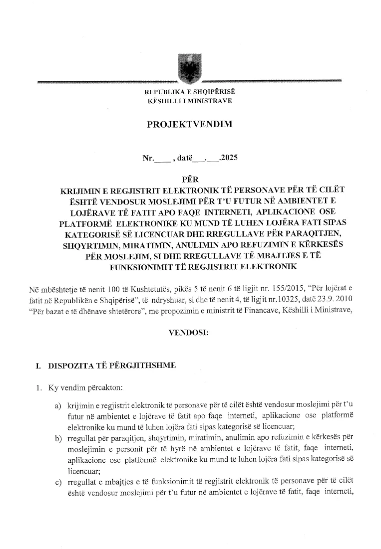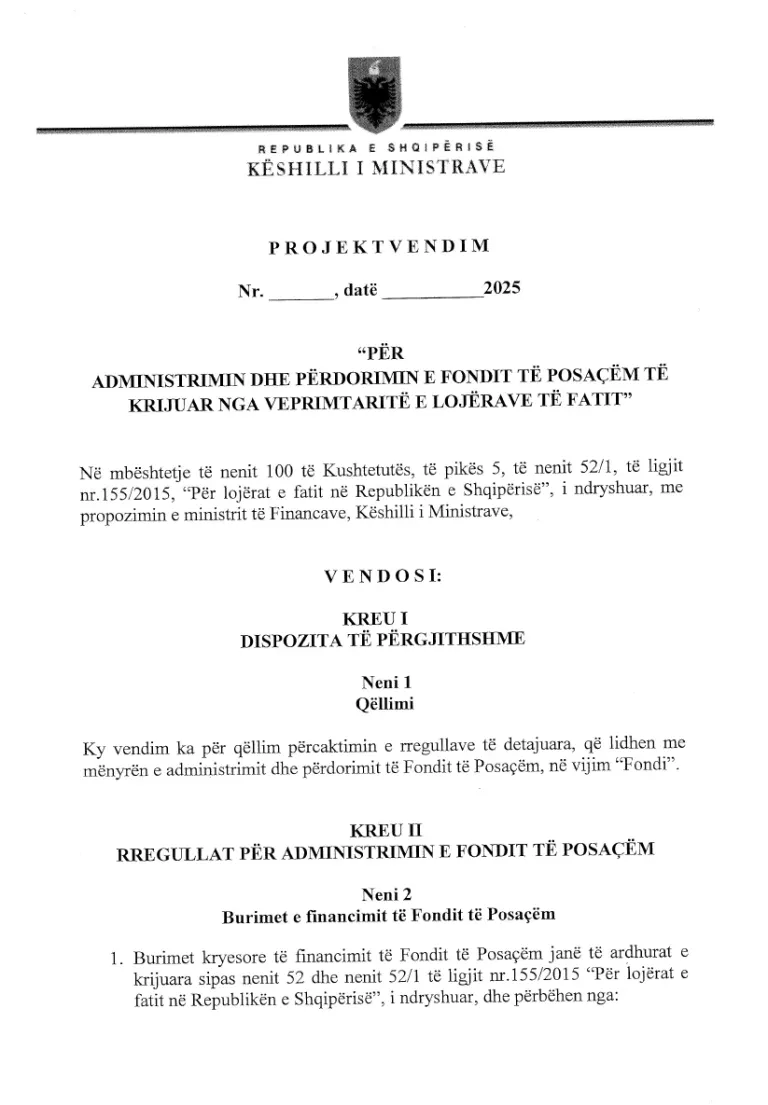 2. Projektvendimi për administrimin e Fondit të Posaçëm të lojërave të fatit
