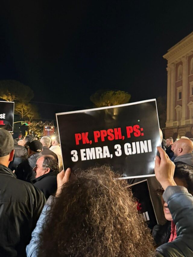 “Një komb dy gjini”, “PK, PPSH, PS: TRE EMRA, 3 GJINI”, “Pastor komunist ka vetëm në PS”, ishin disa nga pankarat e protestuesve.